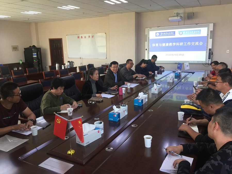 座谈会由兰职体育教学部范丽萍部长主持。会上,王凯行副院长介绍了我校基本发展情况和体育工作开展现状,表明了此次学习交流的目的。范丽萍部长从学校体育教学、课程建设、运动队建设、课余训练、校内外竞赛、课外活动(锻炼)、学生体质监测工作机制、教师评定职称、教科研活动等方面介绍了兰职院体育工作开展情况,分享了自己关于体育工作的心得体会。参会的兰职院各教研室主任分享了兰职院球类、校内外竞赛、教科研活动、人才队伍建设、专业建设等方面的许多成熟经验和做法,并对学校“一校一品”工作经验着重进行了介绍。双方在会上就体育工作开展中存在的困难及开展教科研活动遇到的问题进行了深入探讨和交流。