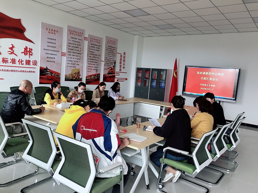 马克思主义学院一直秉承“一人学习,多人收益”的理念,坚持教师外出培训归来进行汇报交流的制度。汇报交流会为全体教师搭建了一个良好的学习、交流、反思、提升的平台,不仅能充分发挥教师外出学习的作用,共享学习资源,使培训效果得以显现和辐射,扩大培训覆盖面。同时,使教师们能充分领略教育教学改革的前沿信息,在研讨中逐步形成新的教学理念,加快思政课教师的成长,为思政课教育教学的可持续发展提供了进一步的保障。