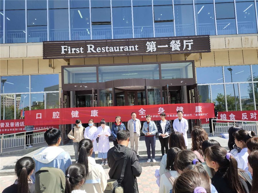 活动一 :9月18日中午,口腔医学系全体师生在一号食堂门口,举行了2020年“全国爱牙日”系列活动启动仪式暨集中宣讲会。医学技术学院院长张志钢、口腔医学系副主任郭艳玲,口腔教研室主任王琳、口腔医学系全体教师及学生400余人参与了活动。活动由郭艳玲主持。罗亚莉宣读了《医学技术学院关于开展第32个“全国爱牙日”活动方案》;王琳做了《口腔健康 全身健康---全国爱牙日的初心与使命》的宣讲报告,向全体同学们介绍了“全国爱牙日”活动的起源、背景以及开展的意义;张志钢做了总结讲话,他希望同学们以爱牙日活动为契机,提升专业实践能力,早日成为合格的“口腔人”,为全民口腔健康做出贡献;全体参会师生在印有“口腔健康 全身健康”横幅上进行了签名活动,强化了学生的专业思想和职业荣誉感。