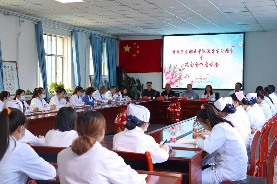 临洮惠民中西医结合医院是由我校影像专业优秀校友边永红创办的一所以介入诊疗为主的专科综合医院,现为我校的学生实习就业基地,今年共有临床医学、护理、中医、针推、药学、医学检验、医学影像等七个专业的29名同学。于7月中旬进入该院实习,本次教学实习检查暨校企合作交流,广泛了解了实习单位对我院学生在专业理论基础、学习态度、劳动纪律等方面的反映和评价,以及学校课堂理论教学与岗位需求的对接情况,为学院教学改革和人才培养方案的修订提供了第一线资料,为进一步推动产教融合和实习就业一体化工作打好基础。