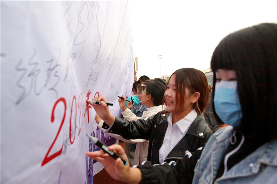 最后,师生代表共同在活动宣传墙上进行了签字,体育教研室指导老师雷玉民带领各班太极拳和八段锦“领打员”在体育馆进行了专项训练。